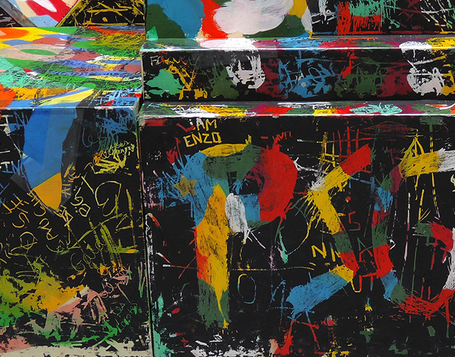 Bancs façon rocher de zoo pour les cours de collège de paris / centre pompidou / avec marion pinaffo / 2014